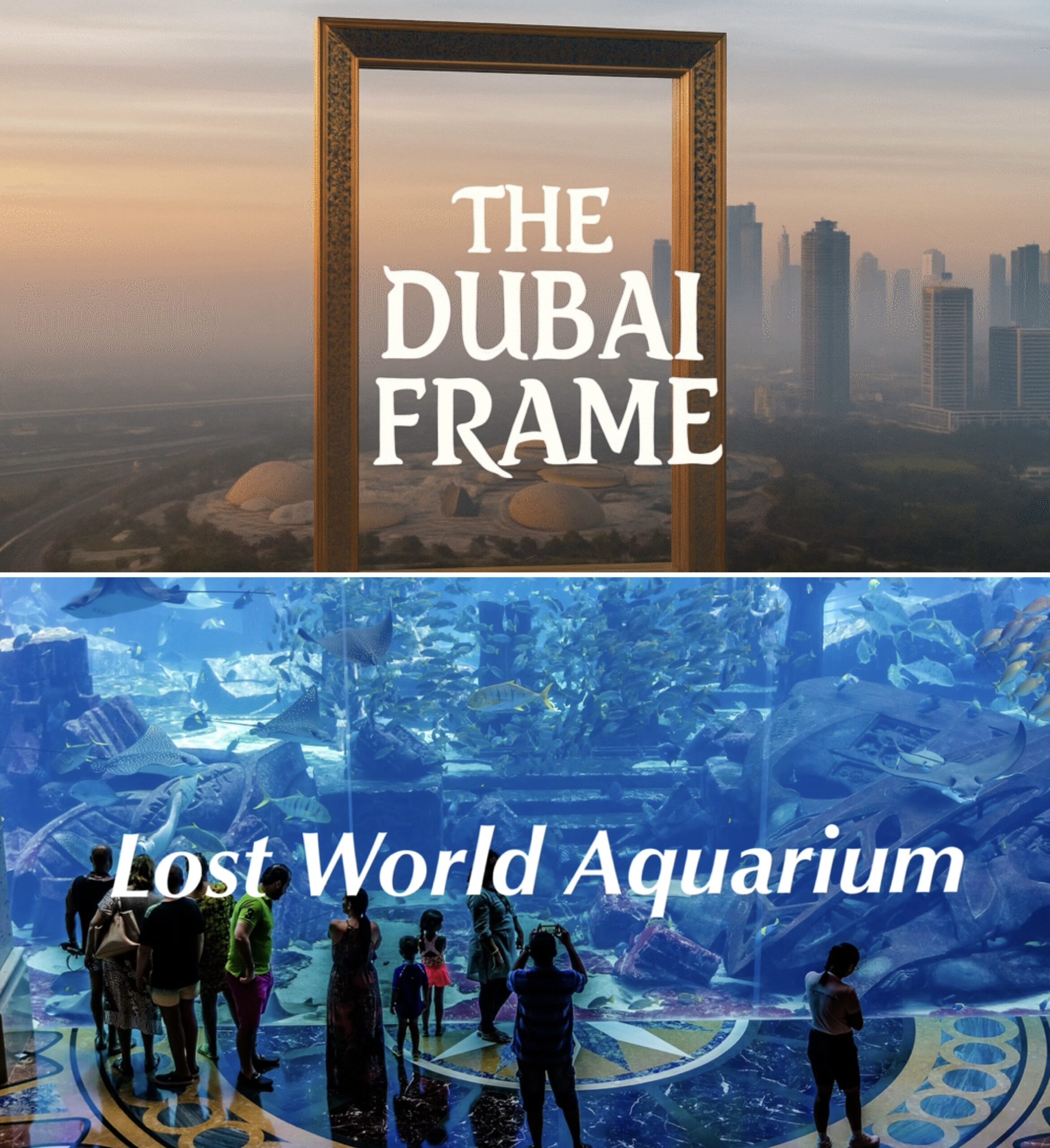Enjoy two unique attractions with this exciting combo! Capture amazing panoramic views of Dubai from the iconic Dubai Frame, showcasing the city’s past and future. Then explore the Lost World Aquarium, where fascinating marine creatures and themed underwater zones bring the ocean’s mysteries to life. A perfect mix of sightseeing and adventure for all ages.